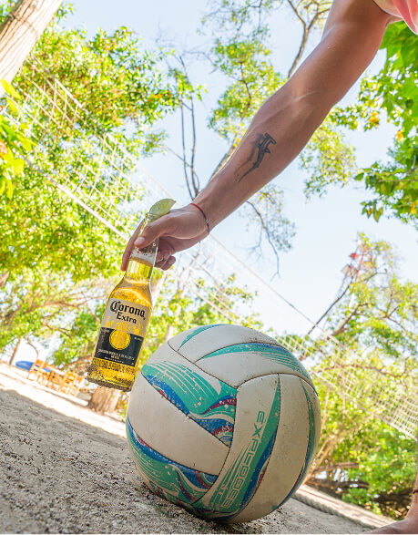 Para los que son un poco más deportistas, tenemos la cancha de volleyball para que te diviertas con otros islanders.